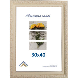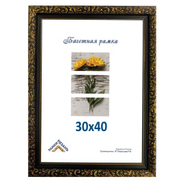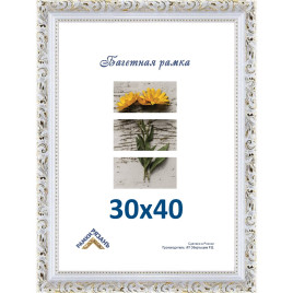 Характеристики рамки:Размер фотографии: 30 см х 40 смМатериал багета: пластикМатериал вставки: пластиковое стеклоШирина багета: 30 ммВысота багета: 24 ммКрепление задника: лепестки 10 штМатериал задника: двпУпаковка: термоусадочная пленкаСобственное производство фоторамок и рамок для картин.. ...