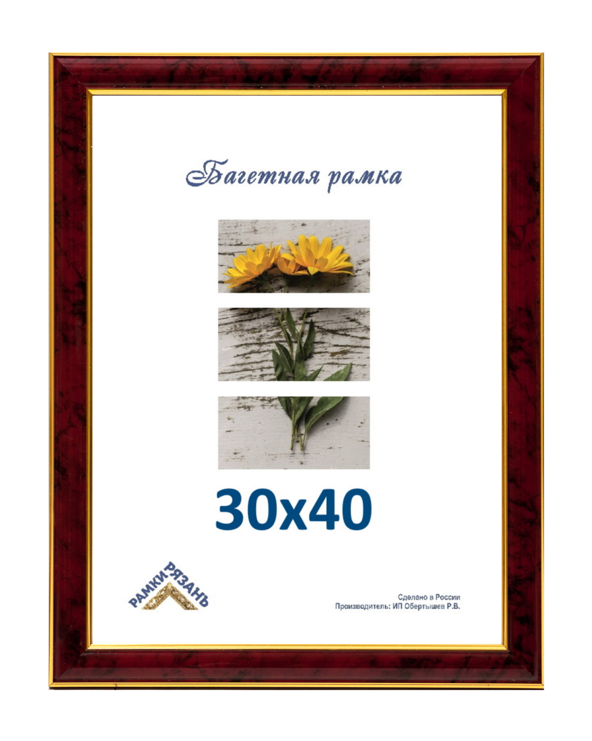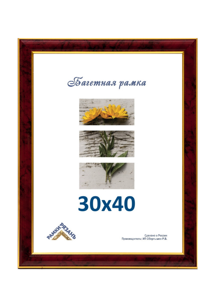 Багетная рамка 30х40 с пластиковым стеклом (перед использованием снять со стекла защитную пленку с двух сторон) и задником двп,подвесы, внутренний размер 30 см на 40 см. Рамка 30х40 предназначена для оформления фотографий и вышивки. Ширина багета 3 ... Читать полностью →