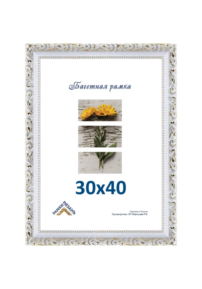 Багетная рамка 30х40 с пластиковым стеклом (перед использованием снять со стекла защитную пленку с двух сторон) и задником двп,подвесы, внутренний размер 30 см на 40 см. Рамка 30х40 предназначена для оформления фотографий и вышивки. Ширина багета 3 ... Читать полностью →